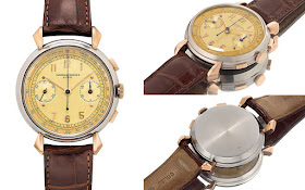 Phillips 'Auftritt Hong Kong Verkauf wird deutlich beobachtet werden, um zu sehen, ob es die Dynamik und Rekordpreise, die es bei seinem letzten Verkauf in Genf erreicht hat, beibehalten kann . Am Tag vor der Auktion Genf, schloß Phillips die Only Watch Charity - Auktion in Genf , dass die einmaligen sah Patek Philippe Referenz 5016a wird die teuerste Uhr , die jemals bei einer Auktion verkauft Mit über 350 Lose im Angebot an der Hong Kong Auktion (man kann den ganzen Katalog hier sehen ) gibt es viel verdauen. Hier sind 10 besonders interessante Uhren, mit etwas für jedes Budget. Los 145: Vacheron Constantin ref. 4178 Chronograph aus Edelstahl und rosa Gold : Der Quintessenzwein Vacheron Constantin Chronograph, der Hinweis 4178, zeichnet sich durch seine eleganten Teardrop-Laschen aus. Dieses besondere Beispiel ist ungewöhnlich, dass es ein Stahlgehäuse Band und Rücken, während die Laschen, Krone und Drücker sind in rosa Gold. Es ist ein frühes Exemplar, das 1943 hergestellt wurde und von einem Archiv-Extrakt aus Vacheron Constantin begleitet wird. Geschätzt auf HK $ 240.000 bis HK $ 400.000 (ca. US $ 30.000 bis US $ 50.000).